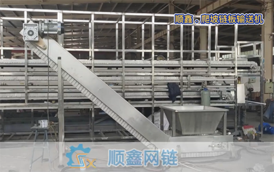 鏈板輸送機的輸送麵(miàn)平坦光(guāng)滑(huá)、摩擦(cā)力小,物料在輸(shū)送線之間的過渡(dù)平穩,可(kě)輸送各類玻(bō)璃瓶、PET瓶、易拉罐等物料,也可輸(shū)送各(gè)類箱包。